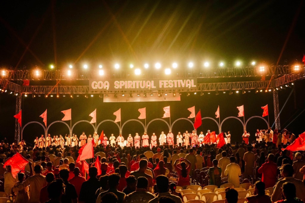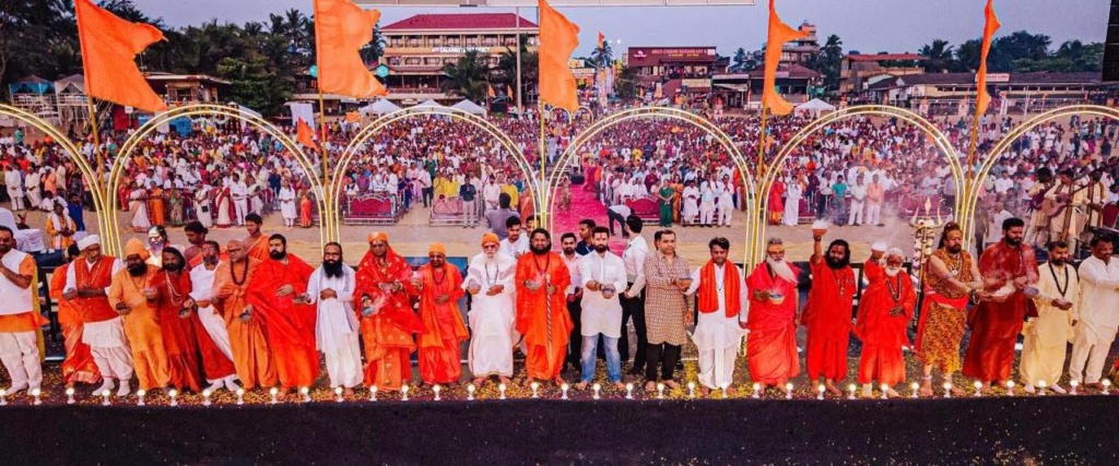 The auspicious beginning of the program was marked by Mahapujan at Shri Shantadurga Temple. Thereafter, amidst the resonating beats of dhol-tasha, chants of victory, and the divine Harinaam, a grand procession was taken out in the holy presence of saints and mahants. In the main ceremony that followed, the state leadership ceremonially honored the spiritual leadership (Sant Pujan), the grand Sea Maha Aarti was performed in the presence of saints, Union Minister Chirag Paswan was felicitated and shared his thoughts, revered saints delivered their blessings, and Sadguru Brahmeshanand Acharya Swamiji was conferred the title “Goa Swami” in a grand honor by the saints and mahants. Thousands of devotees were present.