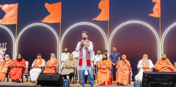 Goa is the sacred land of Lord Parashurama. Today, the Chief Minister of Goa is striving for the upliftment of Sanatan Dharma. The entire Goa has become imbued with saffron spirit, and efforts are being made so that Goa is known not as a land of indulgence but as a land of yoga and spirituality. Brahmeshanand Swamiji is leading this sacred Parashuram Bhoomi, and words are insufficient to praise him. This was expressed by the President of Akhil Bharatiya Akhada Parishad, Mahant Ravindrapuri Swamiji.
